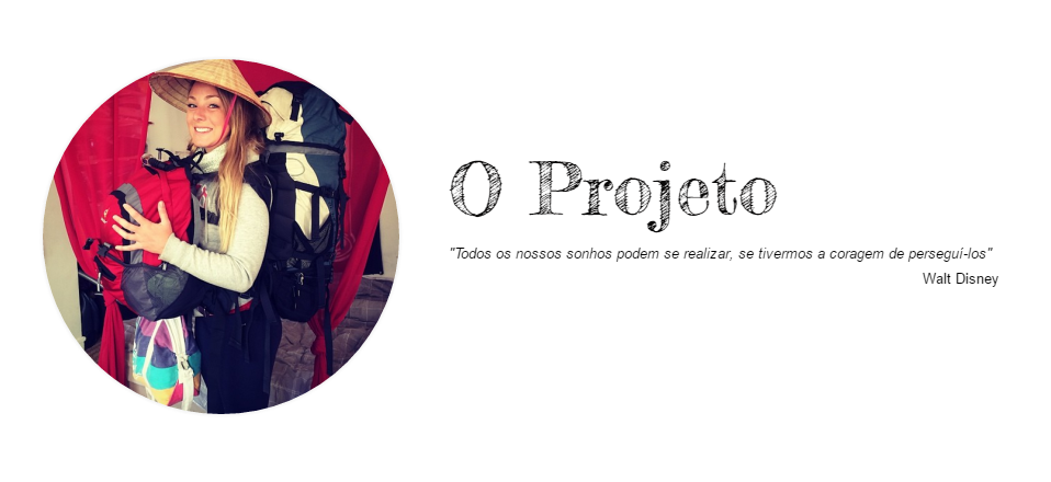 Enquanto planejava esse projeto, dentro de mim eu tinha uma certeza: nem que fosse por um período curto de tempo, eu queria viajar o mundo como estilo de vida, eu queria não ter casa, eu queria ver tudo o que a vida me permitisse, eu queria conhecer pessoas e realidades diferentes, eu queria ver e sentir, eu queria ajudar a quem precisasse, eu queria trabalhar sem ser por dinheiro, eu queria mais, muito mais, era uma vontade insaciável do desconhecido.”