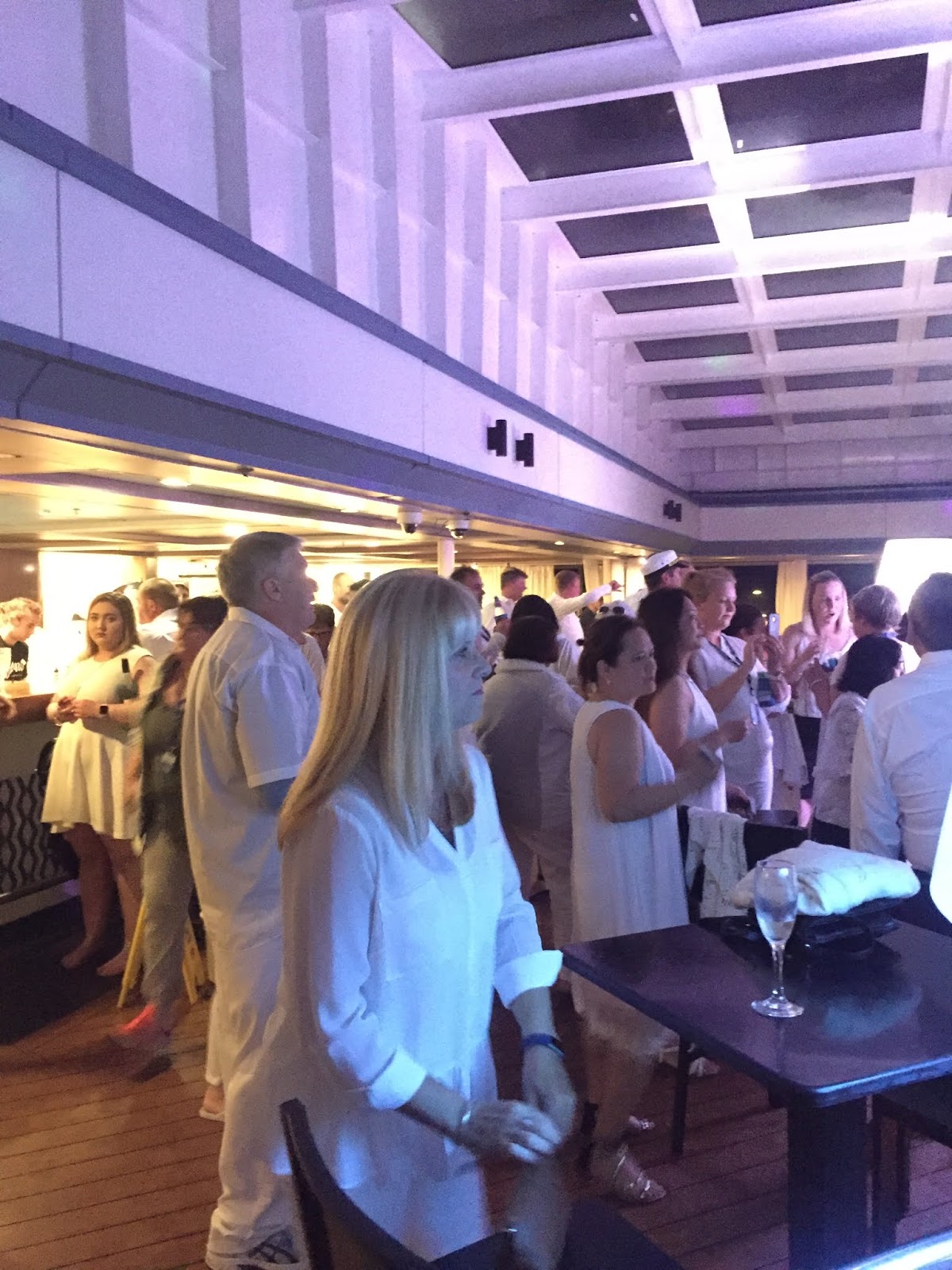 Nós aproveitamos esse período para explorar o navio, petiscamos algo no deck 11 por volta de 17:00 e voltamos para jantar as 21:00 e enquanto o navio não partia aproveitamos para assistir a um show ao vivo no deck 8 e brincamos um pouco de basquete no deck 12.