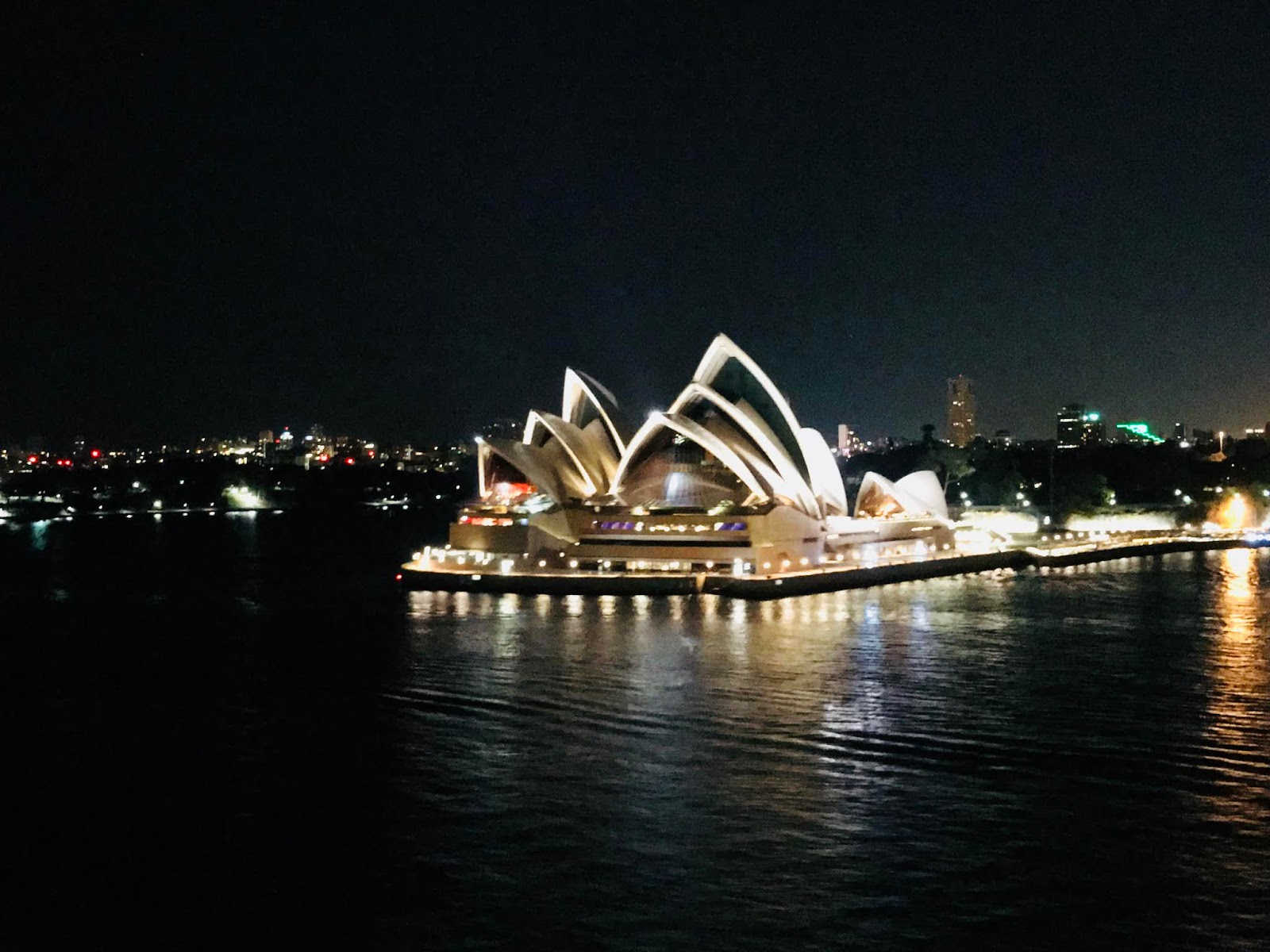 Por volta de meia noite subimos para o deck 12 para ver o navio navegando e aproveitamos para fotografar o Opera House com uma das vistas mais incríveis que ja vimos.