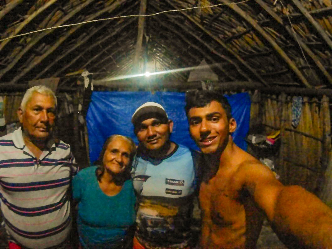 Ainda caminhei uns 30 minutos para chegar do ponto de início do Oásis, à casa dos anfitriões onde me hospedei na “Dona Loza e do seu Mano” uma família tradicional dos Lençóis com um carisma e hospitalidade que não é em todo lugar que você é tratado com tamanho carinho. Nessa casa, onde eles recebem os mochileiros e aventureiros, tentei me encaixar o máximo que pude no dia a dia da família, ajudando nas tarefas, conhecendo muito da história das gerações passadas em busca de compreender melhor os seres humanos que ali habitam. Me banhei no rio negro, dei leite pra um filhote de cabrito recém resgatado das garras de um “Carcará”, uma espécie de gavião da fauna do local, coloquei milho pras cabras, e assim foi meu 1º dia daquele intenso intercâmbio de conhecimento das culturas tradicionais.