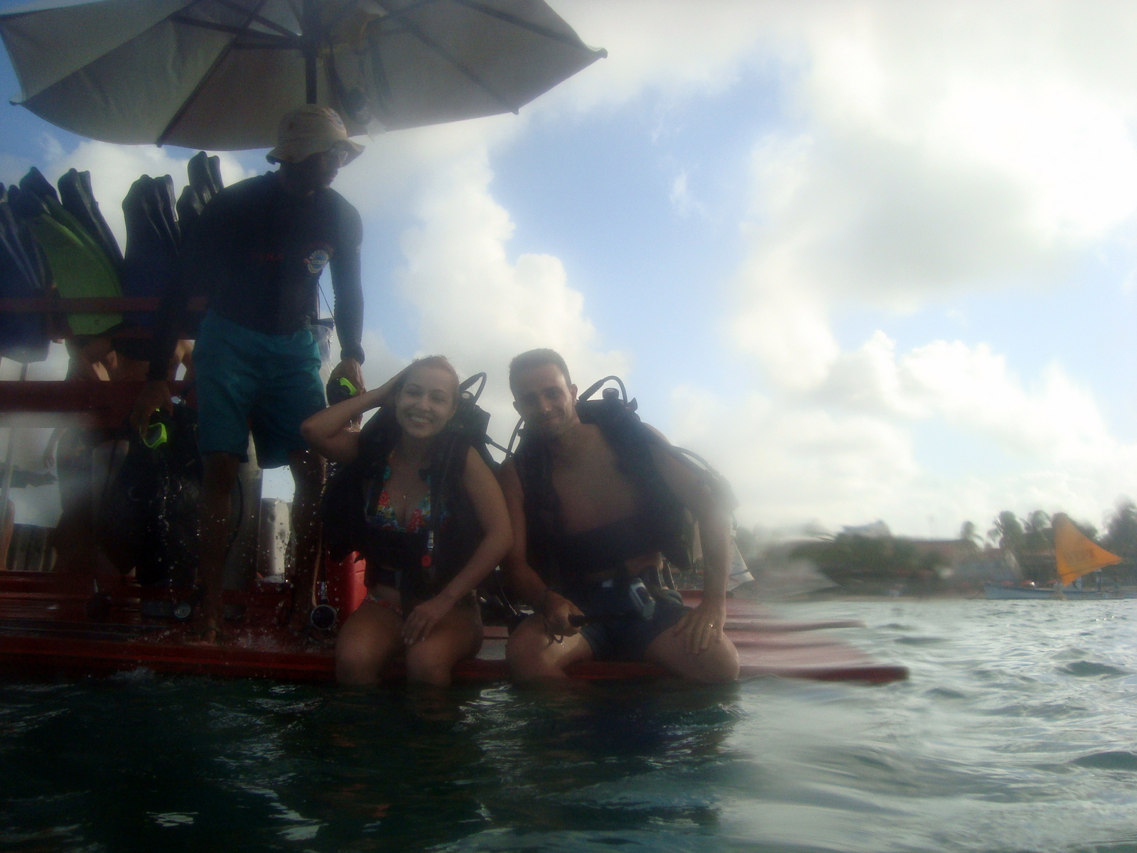 De lá fomos andando até a praia onde uma jangada nos levou até o local do mergulho.