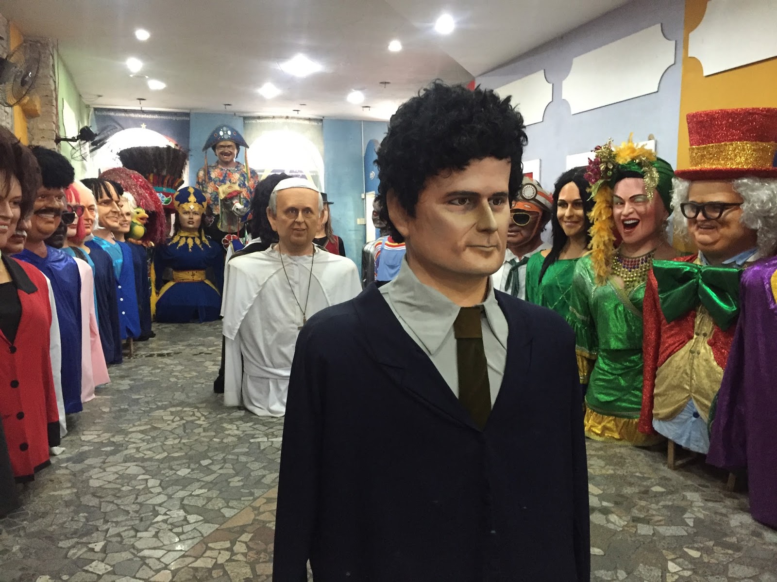 Mais tarde, após realizarmos o checking no hotel Prodigy (localizado próximo a praia de boa viagem) voltamos ao centro antigo de Recife para conhecer a embaixada dos bonecos de Olinda e a embaixada do frevo.