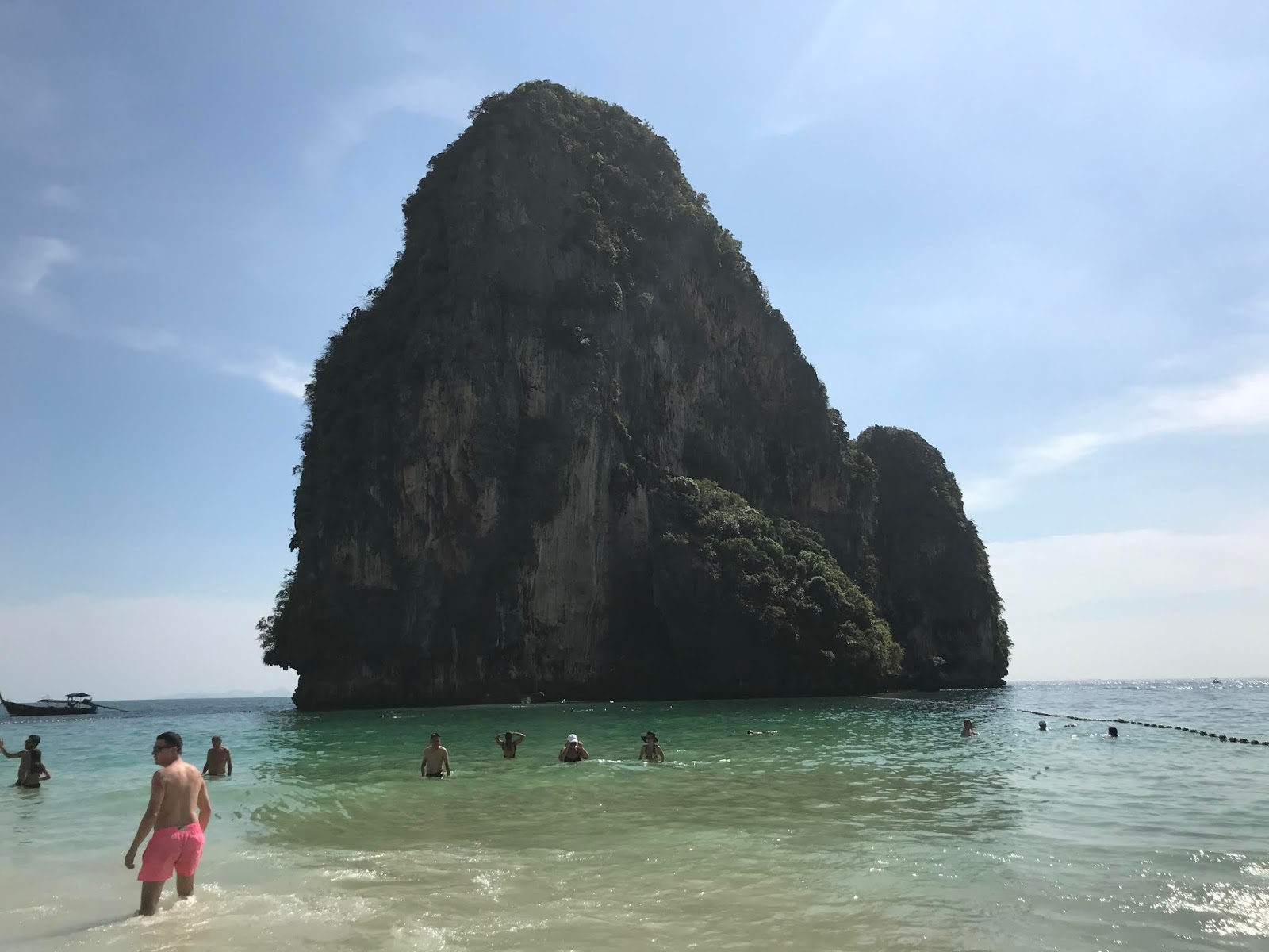 O nosso barco parou na costa da praia, e tivemos que descer em alto mar (você tem a opção de ir de caiaque) até uma rocha onde deve atravessa-la para chegar a Maya Bay.