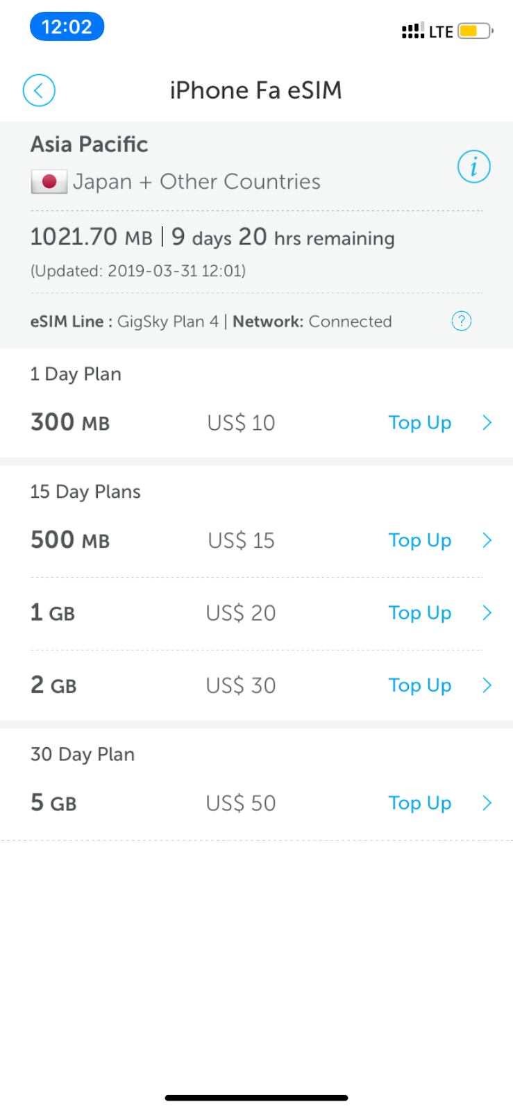 Como passaríamos 10 dias no Japão e nós teríamos um Pocket Wifi disponível conosco na maioria desses dias, então optamos pelo plano de 15 dias, 2GB por US$30,00