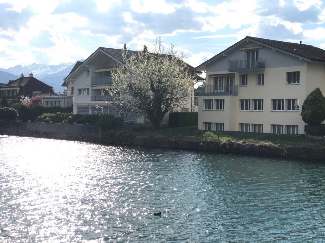 Depois andando mais de carro paramos próximo ao rio Aar, ficamos andando ali a pé na beira do lado e nas ruas estreitas, até chegarmos no Höhematte Park, é uma parque gigantesco onde as pessoas vão para fazer piquenique, sentar, relaxar e ver a vista.
