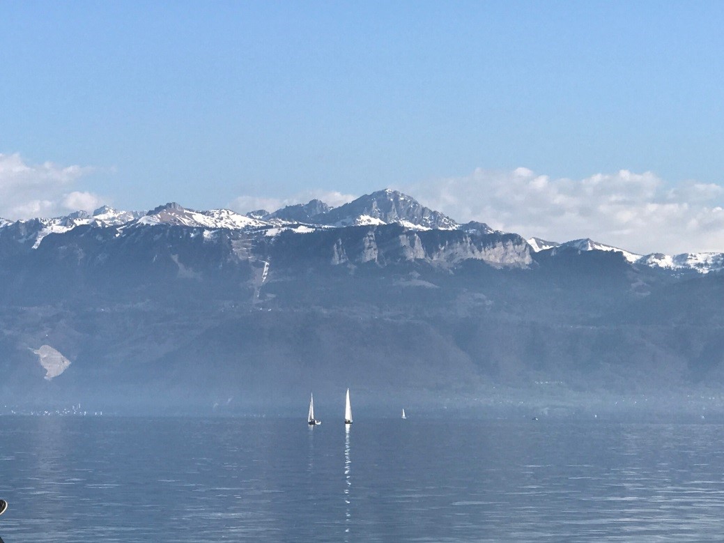 Você consegue ver os alpes franceses e ver um pouquinho da França que fica do outro lado.